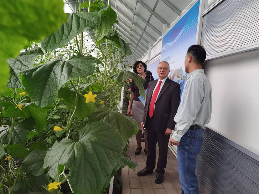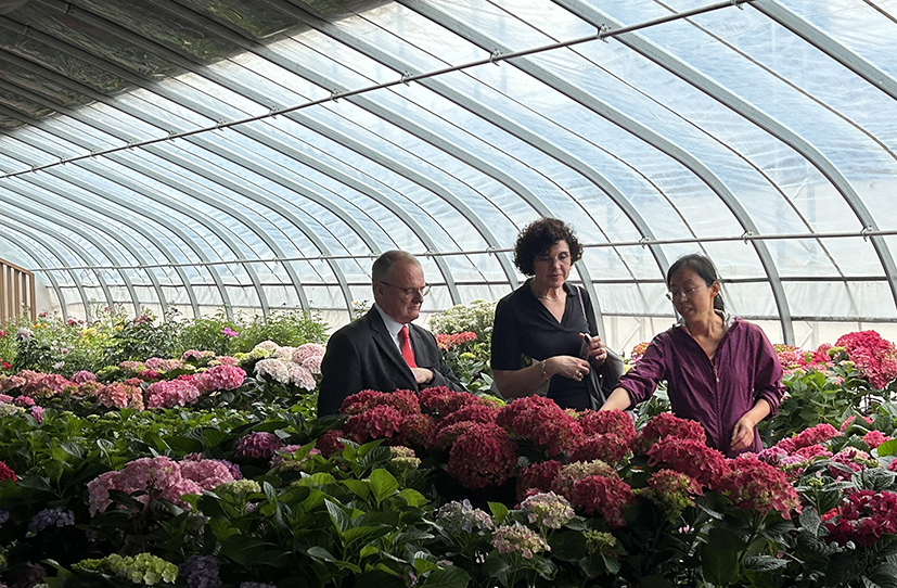 期间,法诺司长一行来到研究所南区展示温室实地考察,张圣平副所长对法诺司长一行的到访表示热烈欢迎,李蕾处长介绍了我所总体情况和国际合作概况,无土栽培课题组李强副研究员向来宾展示了设施园艺装备,对此表现出浓厚的兴趣。在张圣平副所长的陪同下,法诺司长一行还参观了花卉展示园,花卉种苗与月季育种课题组赵鑫副研究员、花卉栽培课题组袁素霞副研究员详细介绍了我所花卉资源与品种选育的情况,我所花卉育种、花期调控技术等给法诺司长留下了深刻美好的印象。来宾一行听取了薄凯亮研究员、李占省研究员关于茄科、葫芦科、十字花科等蔬菜种质资源与新品种选育的情况介绍。