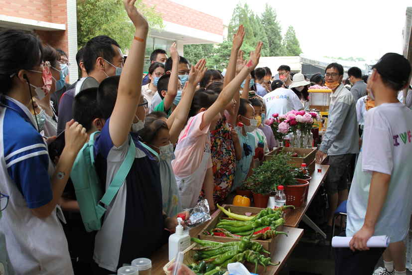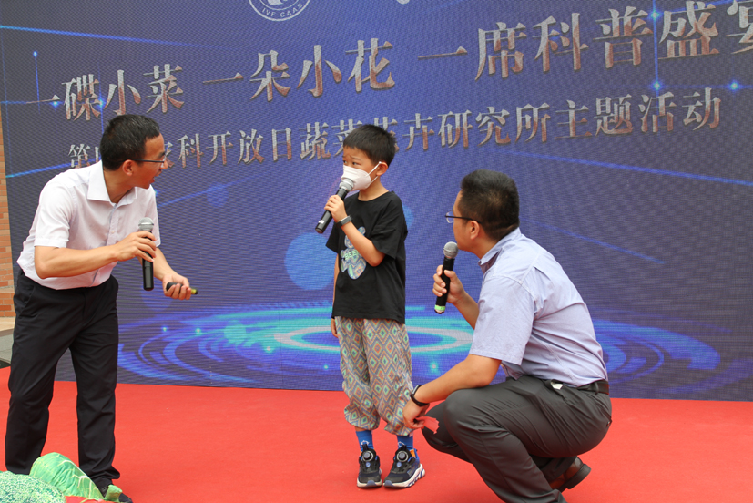 在欢快热烈的气氛中,蔬菜花卉所、交大附中领导为“北京交通大学附属中学校外实践教育基地”揭牌,共同推进青少年科普教育工作。张扬勇副所长围绕“蔬菜花卉的智慧”主题作科普演讲,从“种子的传播、向阳生长、保持竞争优势、与‘敌人’的较量”四个新颖有趣的部分,讲授了现代育种、栽培技术、设施装备等领域科技创新成果。首次发布蔬菜花卉所科普形象代言人“芽芽”,形象元素植根研究所科研沃土,视觉效果传递积极进取精神力量,主旨立意蕴含农业高水平科技自立自强目标实现。设置胡萝卜、辣椒区、采后加工、白菜、花卉、种业等6个专题展区,伴随科研人员讲解,公众品鉴果蔬花卉新产品,积极体验趣味试验。