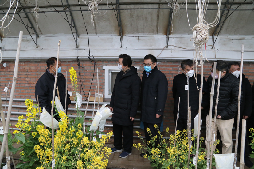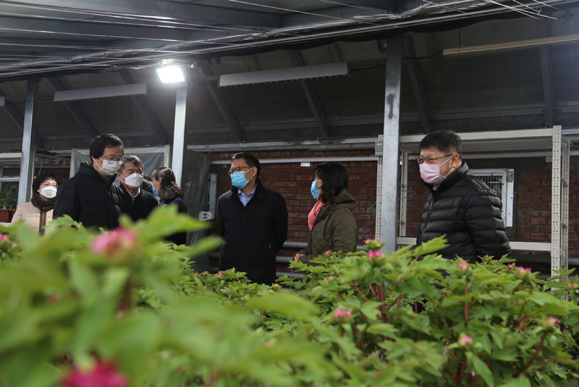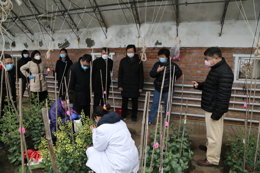 在所区南圃场,唐华俊院长一行先后到甘蓝课题组和白菜课题组杂交温室以及牡丹课题组花期调控温室走访慰问正在授粉、做试验的女职工。期间,唐华俊院长与杨丽梅研究员、张秀新研究员亲切交谈,并询问了疫情期间课题组的科研工作情况,并代表院党组、院领导向她们及我所女职工致以节日的祝贺和美好的祝福。