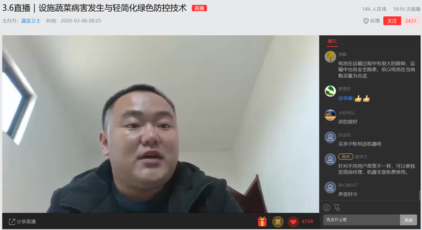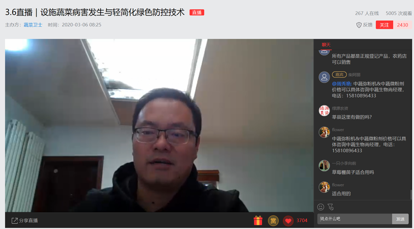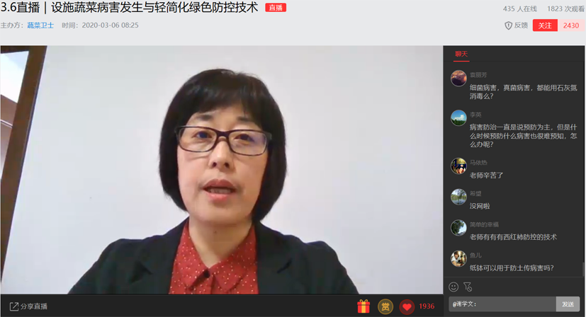 此次直播培训内容丰富,专家讲解深入浅出,通俗易懂,充分利用了线上直播平台进行培训、指导、答疑,取得了良好的效果。全国各地设施蔬菜生产一线超过5800人实时在线观看直播,截止发稿时通过重播的方式观看人数达到7635人,推动早春蔬菜病害安全防控技术的推广,为各地疫情期间蔬菜安全生产提供了有效的技术保障。